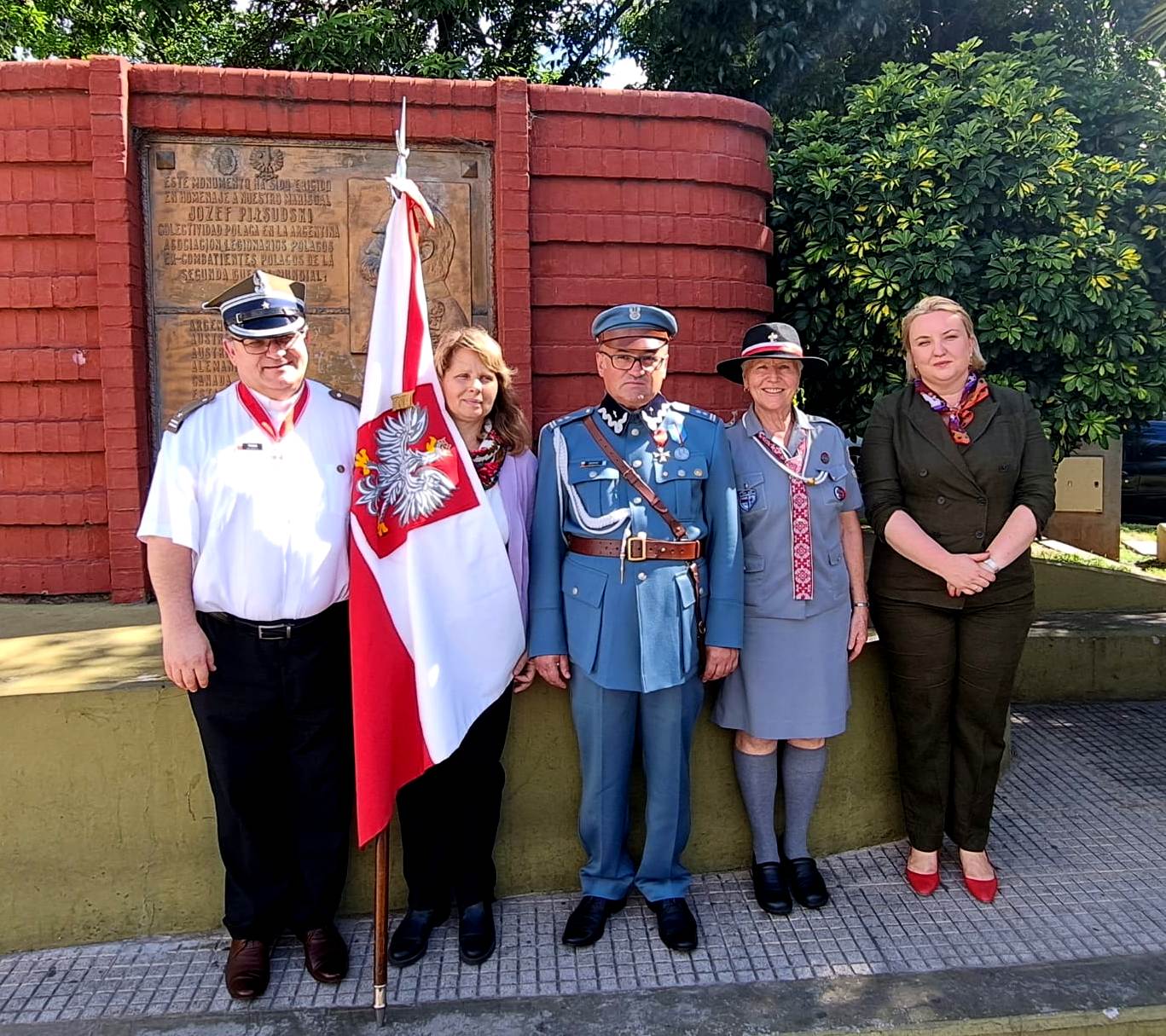 Dnia 11 listopada 2025 roku w stolicy Argentyny – Buenos Aires, odbyła się Uroczystość upamiętniająca 107 Rocznicę Odzyskania Niepodległości. To wydarzenie zostało zorganizowane, przez Związek Piłsudczyków Rzeczypospolitej Polskiej – Oddział w Buenos Aires. Uroczysty Akt miał miejsce przed Pomnikiem Marszałka Józefa Piłsudskiego, jaki znajduje się od 1987 roku przy Alei San Martin w Villa Devoto (Buenos Aires). O godzinie 15.00 po odśpiewaniu przez zgromadzonych Hymnu Rzeczypospolitej Polskiej, sekretarz Związku Piłsudczyków RP w Buenos Aires O. Mjr Jerzy Jacek Twaróg, rozpoczął Uroczysty Akt. Obecni byli Prezes Związku Piłsudczyków Rzeczypospolitej Polskiej (Oddział w Buenos Aires) Pan Generał Alejandro Gustavo Szejner wraz z Kapelanem Związku Piłsudczyków Rzeczypospolitej Polskiej (Oddział w Buenos Aires) O. Ppłk. Olafem Bochnakiem, który poprowadził modlitwę, specjalnie przygotowaną na dzisiejszą Rocznicę Niepodległości. Polską Placówkę Dyplomatyczną w Argentynie reprezentowała Pani Bogna Ruminowicz – Chargé d’affaires a. i. Ambasady Rzeczypospolitej Polskiej w Buenos Aires, radca i kierownik Referatu Polityczno – Ekonomicznego, Pani Ana Maria Ramirez – Ex. Ambasador Argentyny w Polsce oraz Pani Prezes „Ogniska Polskiego” w Buenos Aires Krystyna Wardyga de Ferrari. Była również obecna Druhna Joanna Sempolińska – Uzarowicz: Przewodnicząca ZHP w Argentynie oraz Członkini Związku Piłsudczyków Rzeczypospolitej Polskiej (Oddział w Buenos Aires ): Laura Susana Elisii wraz ze swoją Mamą – Jadwigą. Pan Tadeusz Ledzwa z małżonką – Przedstawiciel Stowarzyszenia Polskich Kombatantów w Argentynie, Pan Edward Fijarczyk, Stanisław Uzarowicz oraz Señor Vicecomodoro Juan Manuel Álvarez de la Fuerza Aérea Argentina. Nasz Apel z okazji 107 Rocznicy Odzyskania Niepodległości był Hołdem dla Marszałka Józefa Piłsudskiego i podziękowaniem za to, że możemy się dziś cieszyć pokojem i wolnością Polski. Momentem kulminacyjnym dzisiejszego Uroczystego Aktu było złożenie wiązanki kwiatów pod Pomnikiem Marszałka Józefa Piłsudskiego przez Ambasadę RP oraz Związek Piłsudczyków RP w Argentynie. Ostatnie słowa należały do sekretarza Związku Piłsudczyków RP – Oddział w Buenos Aires O. Jerzego Jacka Twaroga, który pozdrowił całą ”Rodzinę” Piłsudczyków oraz Wszystkich Rodaków mieszkających w Ojczyźnie – Rzeczypospolitej Polskiej jak i również w Argentynie i na całym świecie.